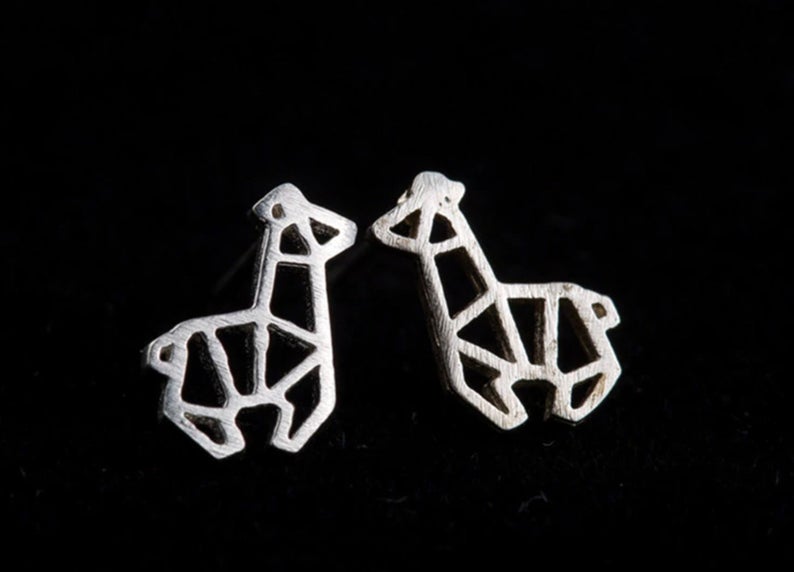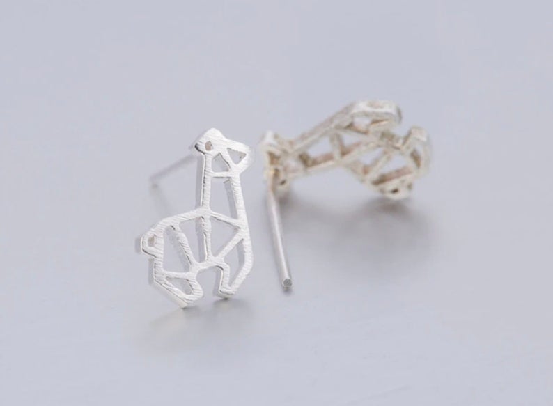 Petite Silver Origami Style Giraffe Earrings