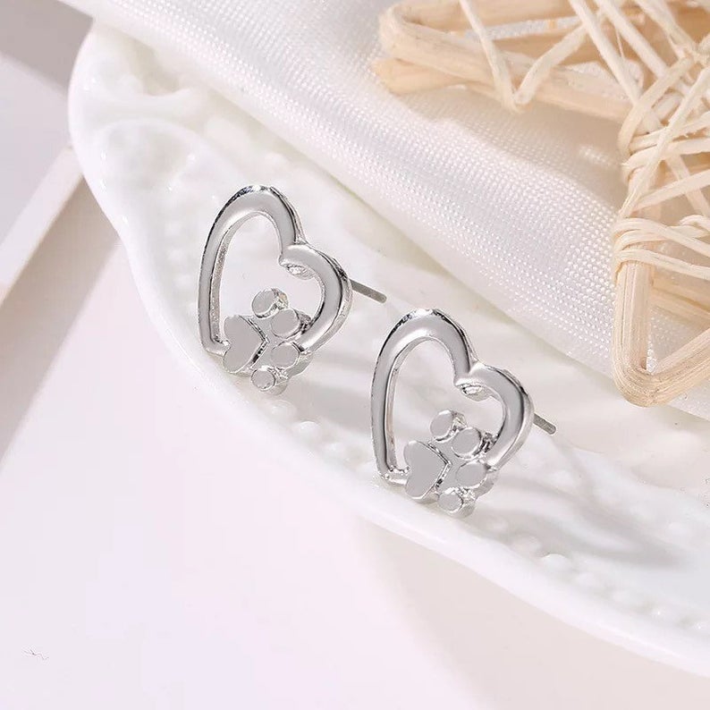 Our paw print heart stud earrings are the perfect piece of jewellery for you.