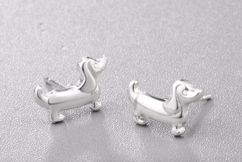 How cute are these sausage dog earrings in their silver colour.